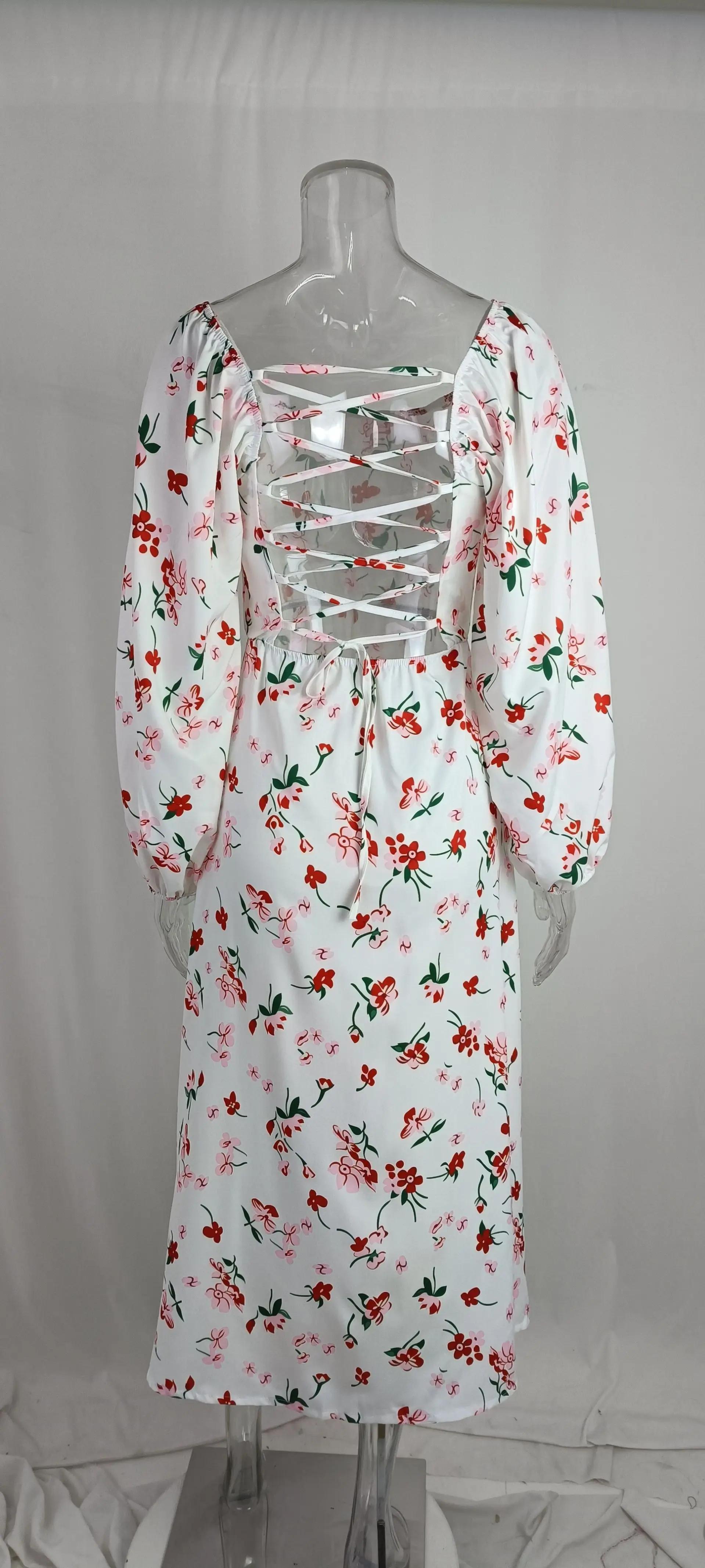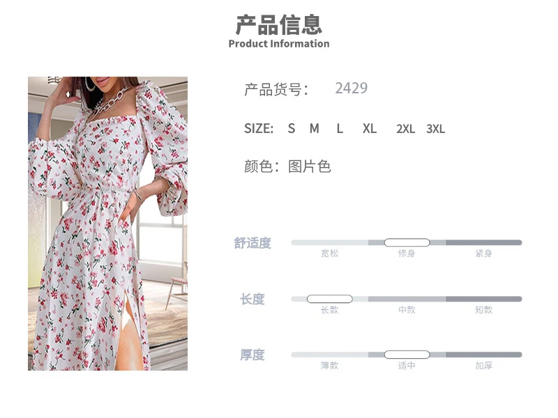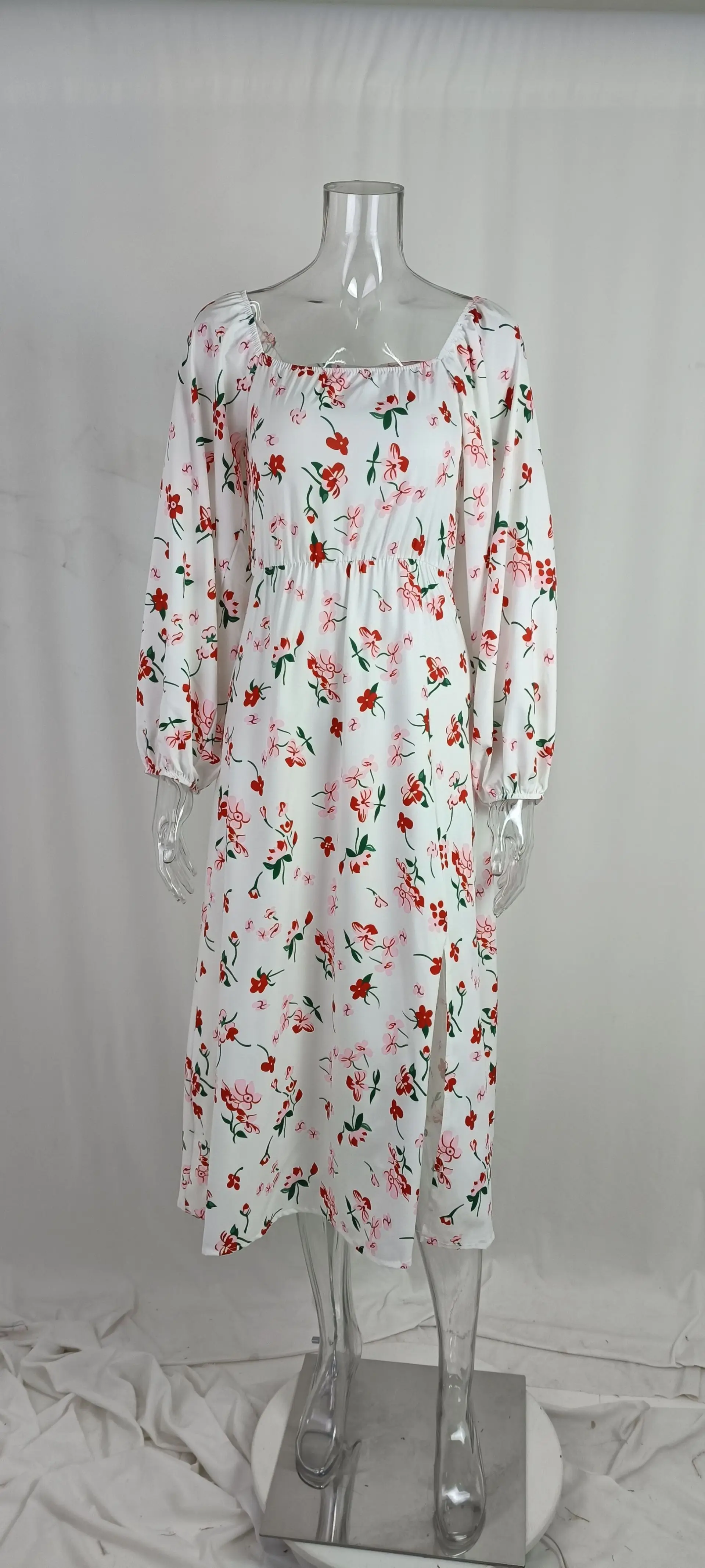 2024 Spring and Autumn Amazon Cross border Trade European and American Women's Fashion Street Sexy Split Long Dress Casual Dress