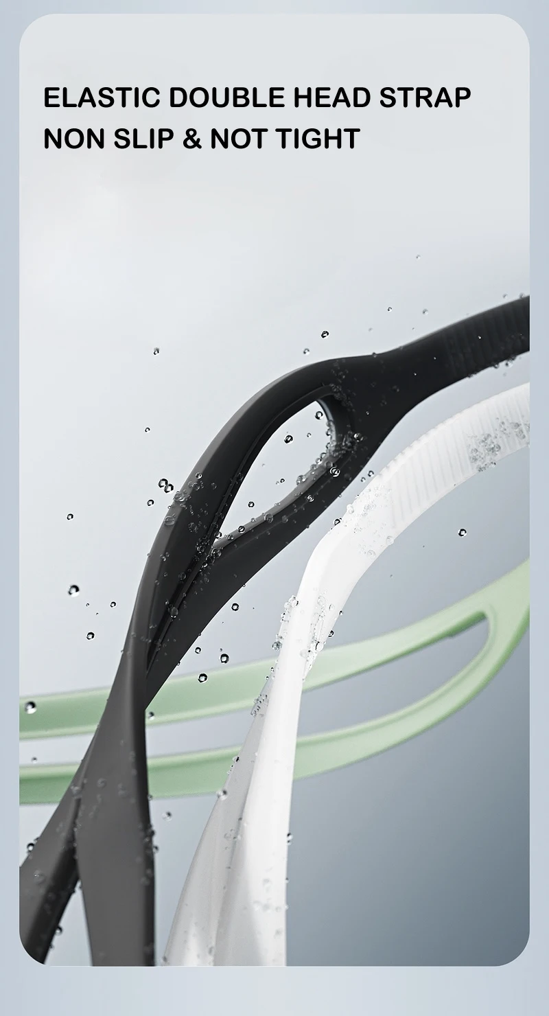 Headband: high-quality ultra elastic and environment-friendly silicone, with hole belt design, to prevent underwater displacement and reduce head discomfort after long-term use