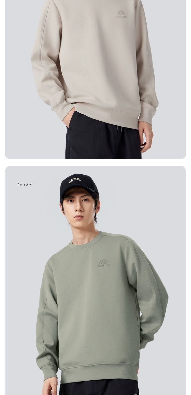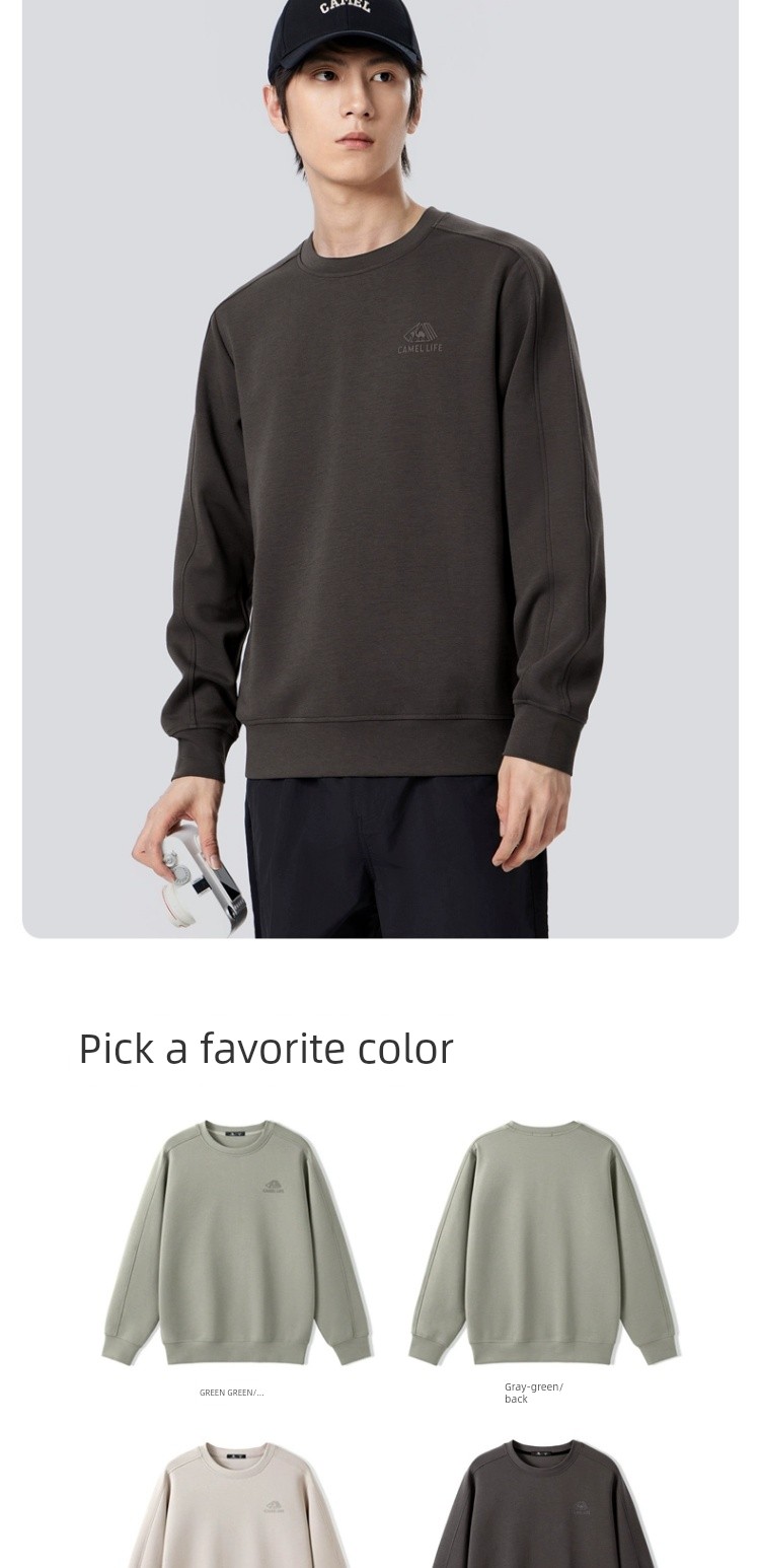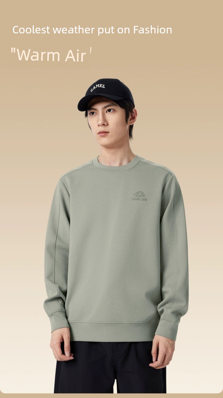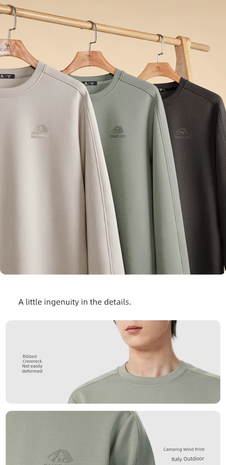 Camel Men's round Collar Sweater Men's Spring and Autumn 2025 Couple Pullover Pure Color Long Sleeves T-Shirt Bottoming Shirt Tops Men