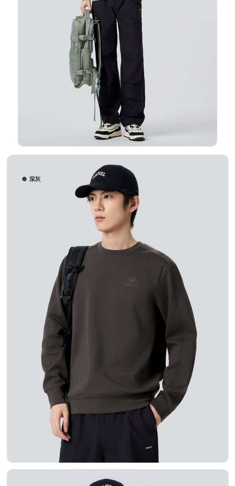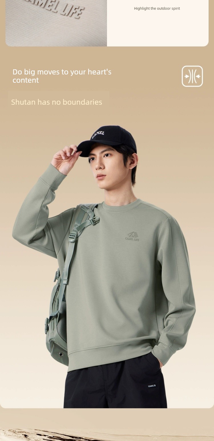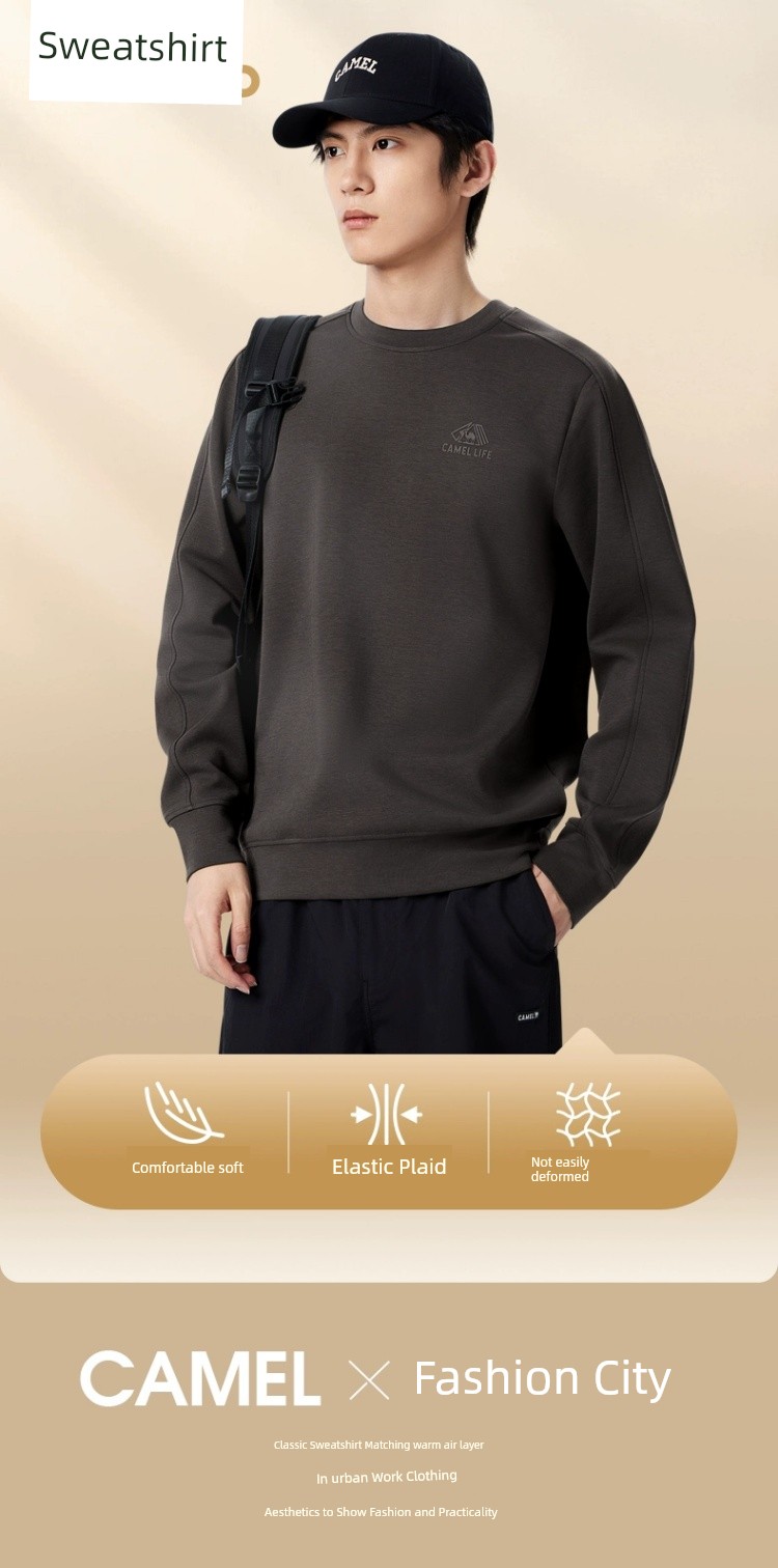 Camel Men's round Collar Sweater Men's Spring and Autumn 2025 Couple Pullover Pure Color Long Sleeves T-Shirt Bottoming Shirt Tops Men