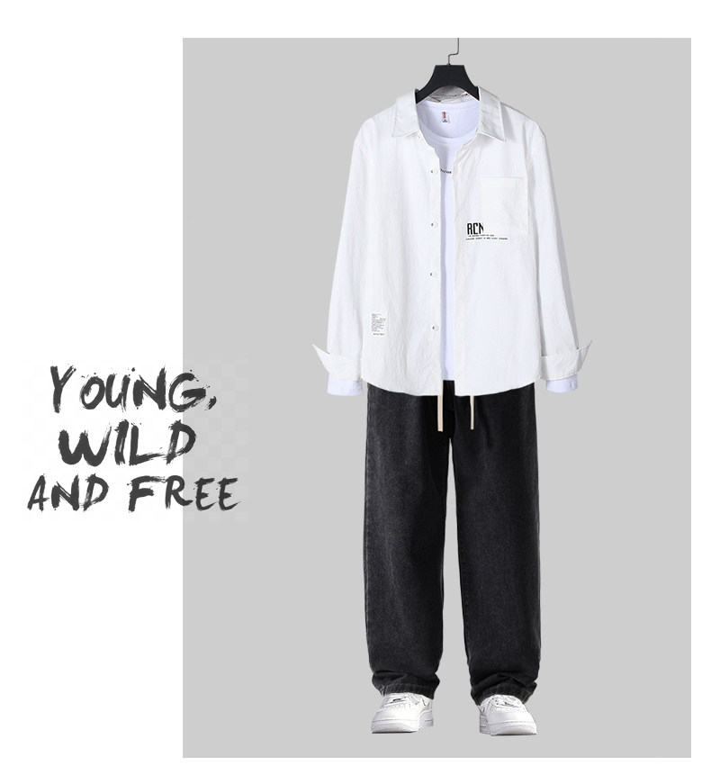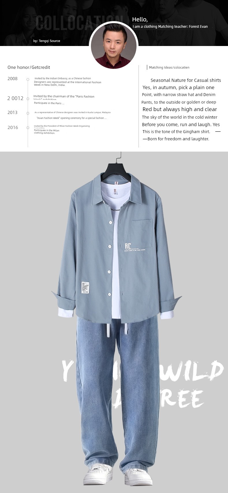 Casual Pu Handsome Matching Mature Three-Piece Shirt