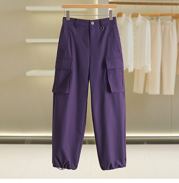 Casual Wind Loose Tappered Pure Color Cargo Pants