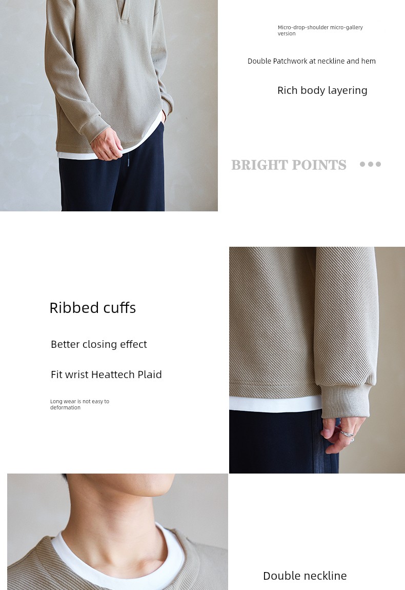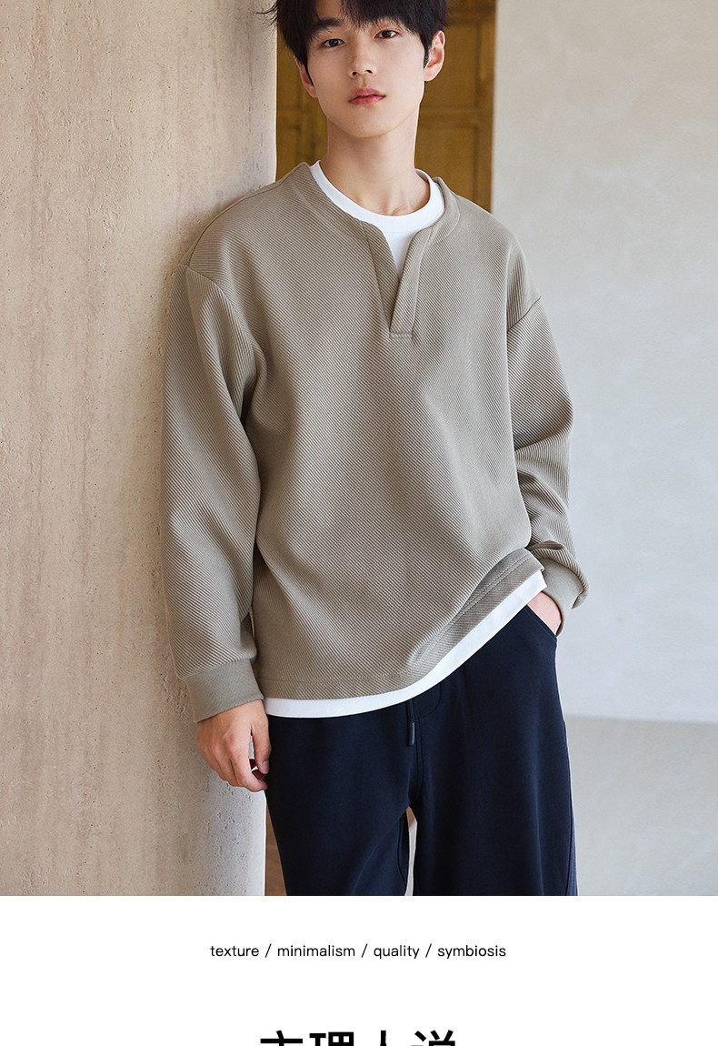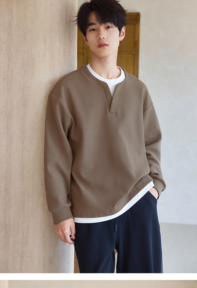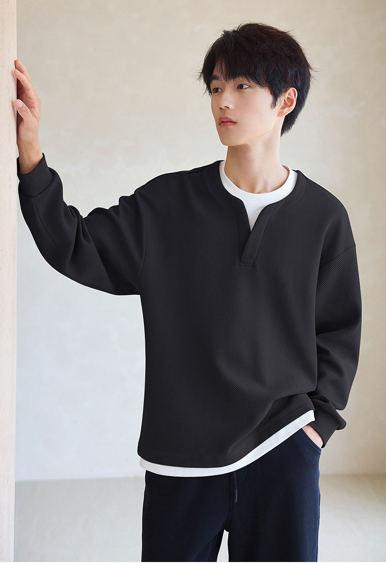 False Two-Piece Sweaters Men's Long Sleeves 2025 Spring and Autumn New Arrival Heavy Weight round Neck Men's Clothing Inner Bottoming Shirt T-Shirt Tops