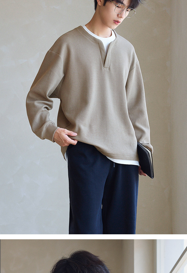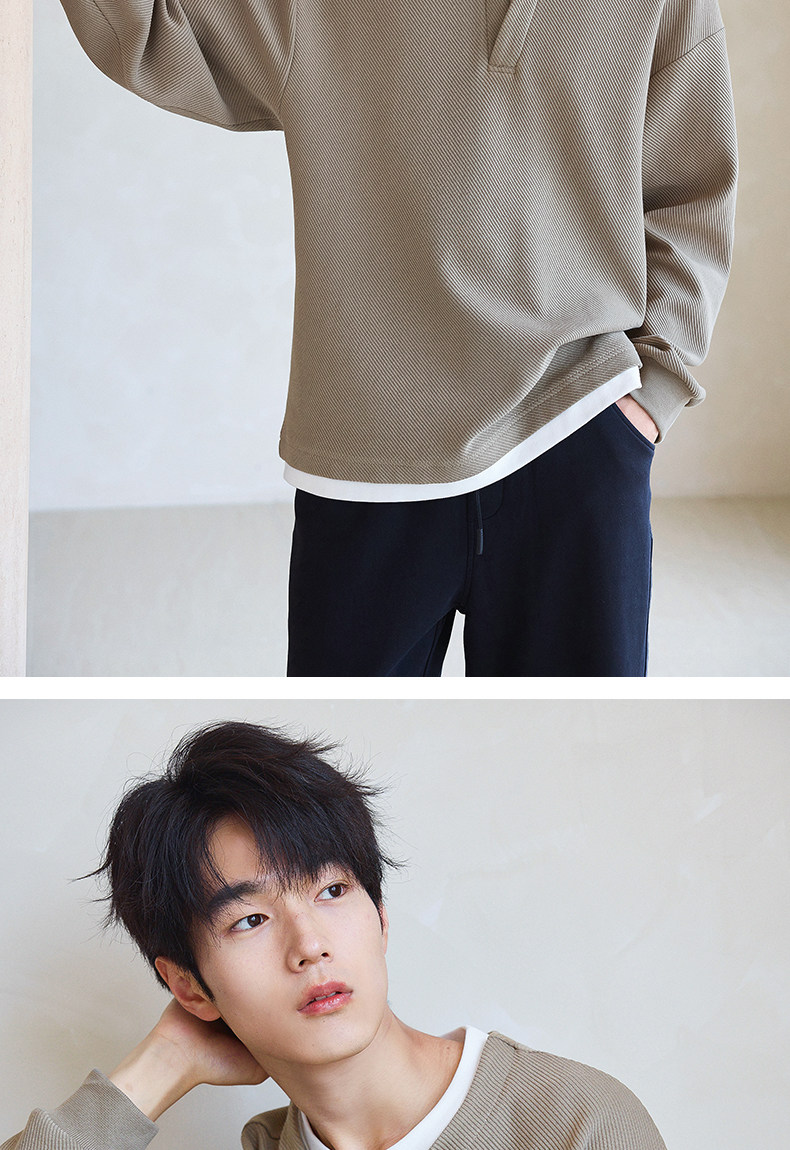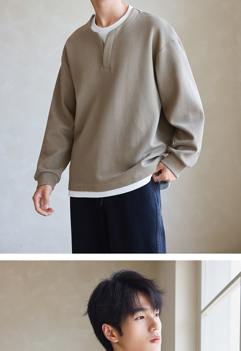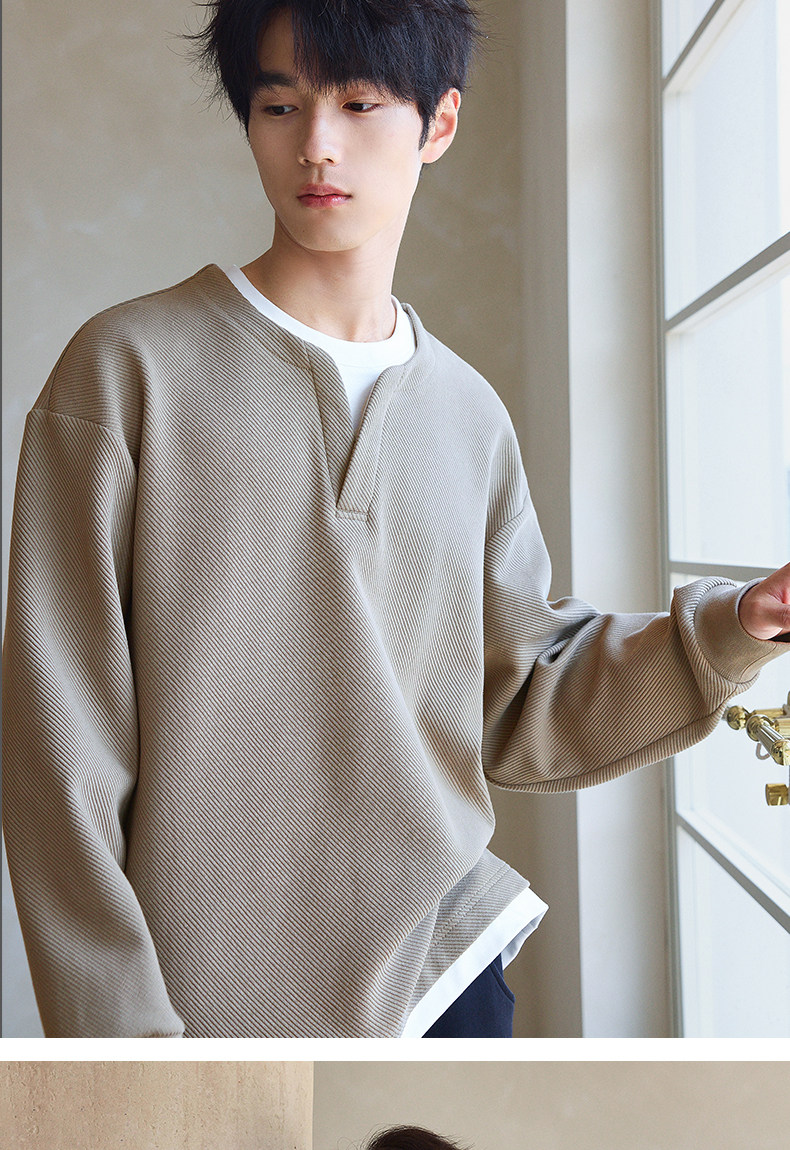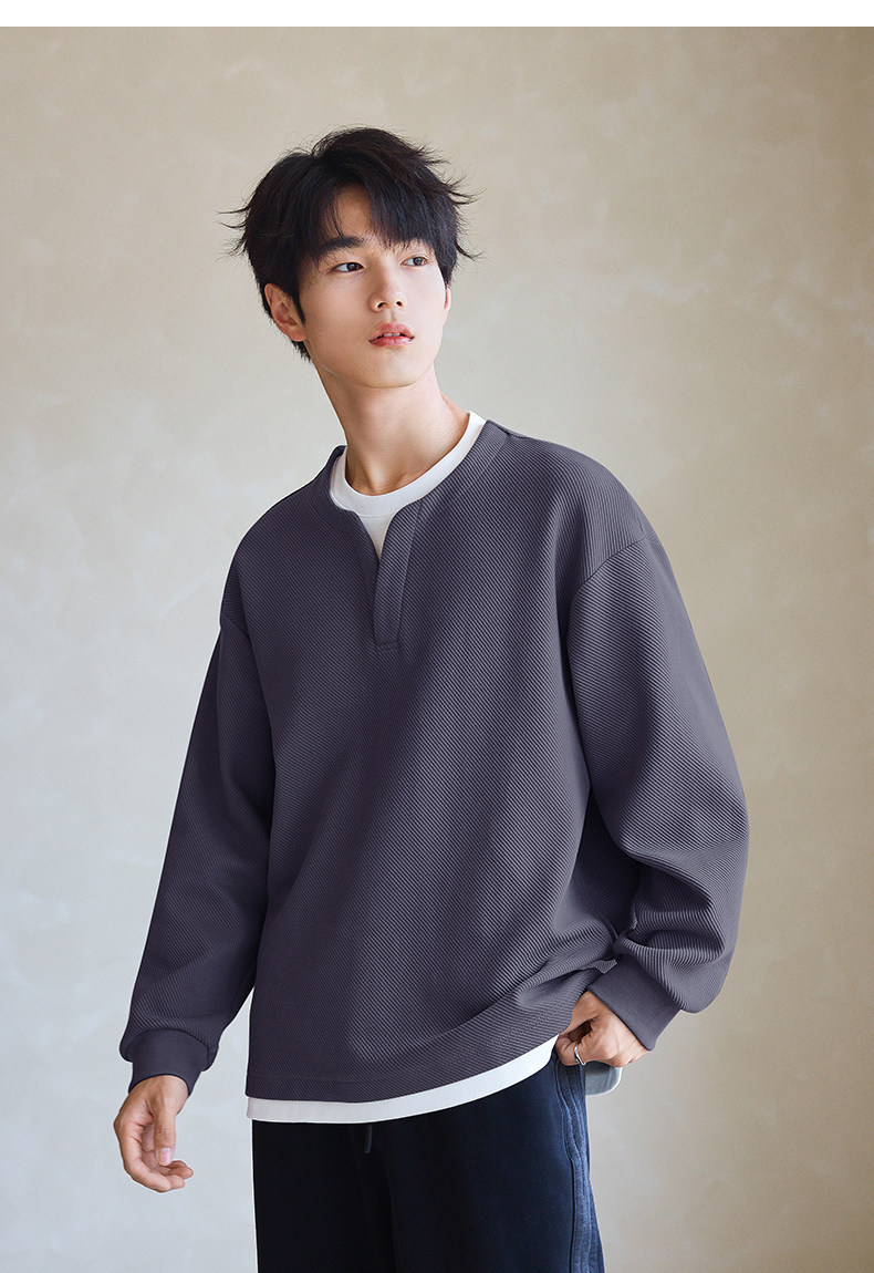 False Two-Piece Sweaters Men's Long Sleeves 2025 Spring and Autumn New Arrival Heavy Weight round Neck Men's Clothing Inner Bottoming Shirt T-Shirt Tops