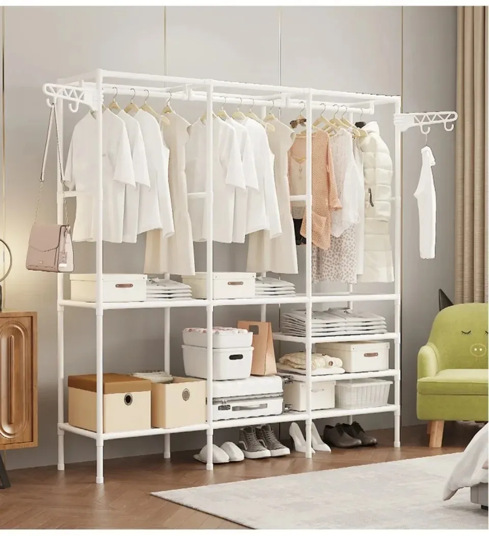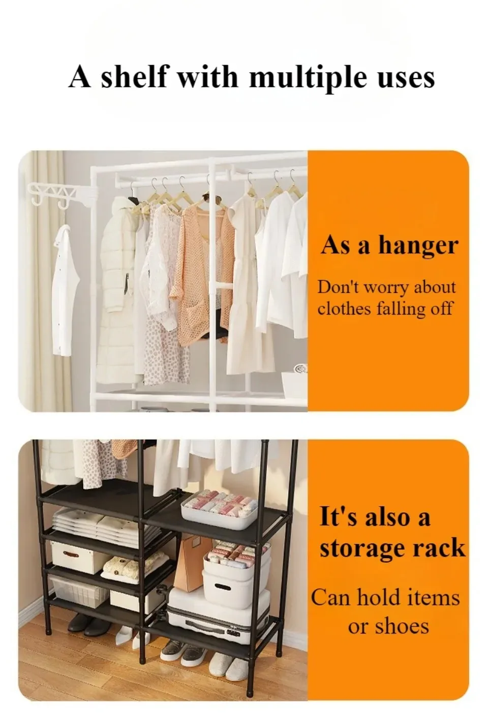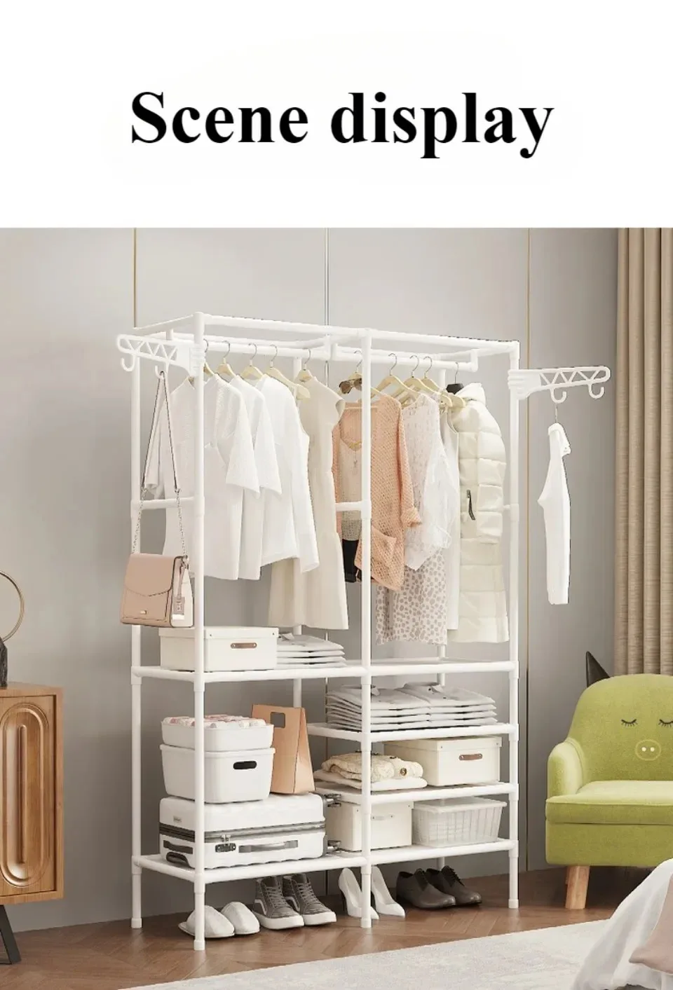 Floor Coat Rack Bedroom Coats Shelf Double-Row Large Wardrobe Hangers Simple Assembly Household Storages Shelf Clothes Hanger
