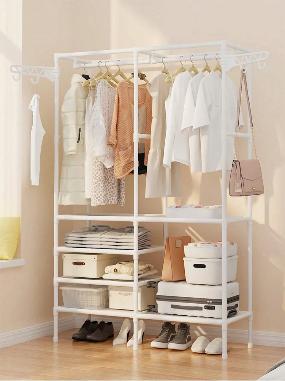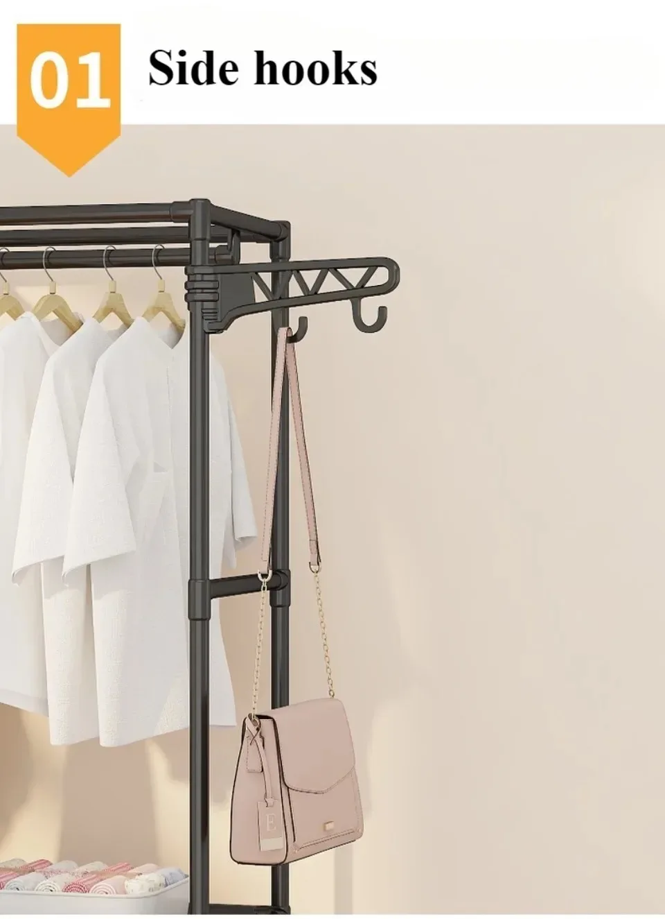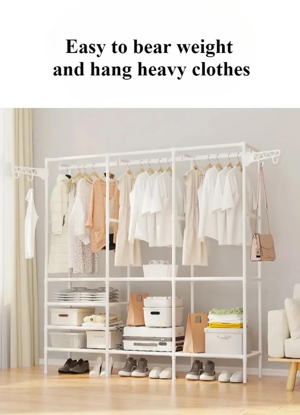 Floor Coat Rack Bedroom Coats Shelf Double-Row Large Wardrobe Hangers Simple Assembly Household Storages Shelf Clothes Hanger