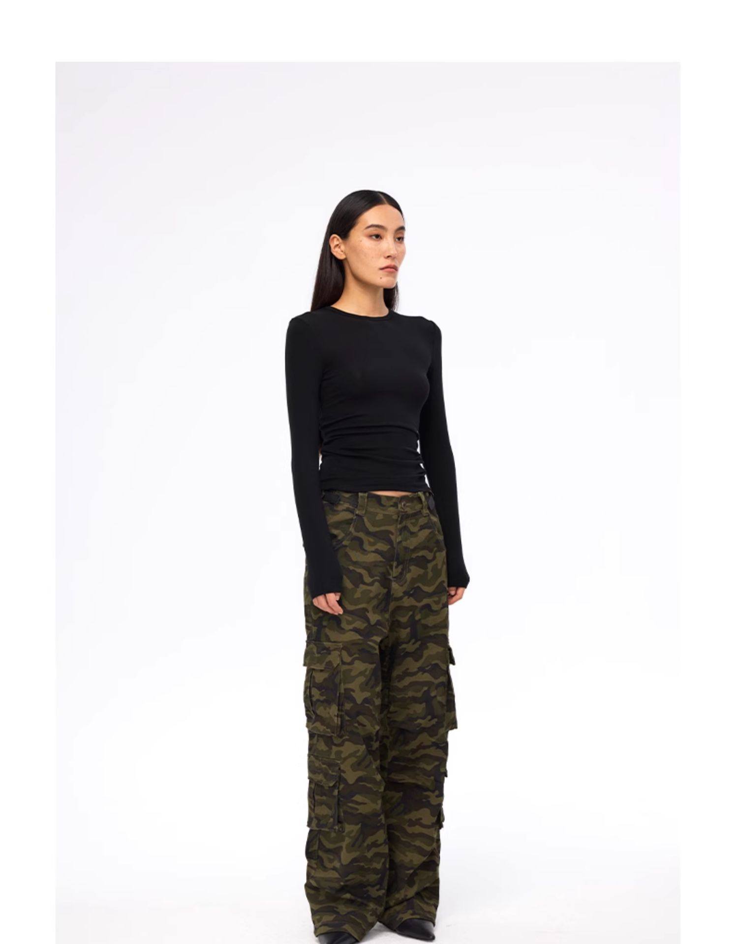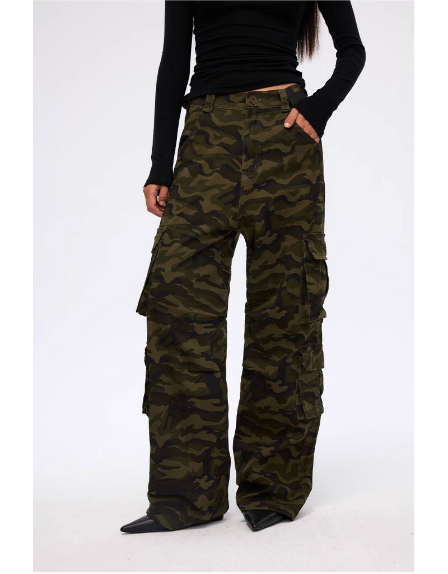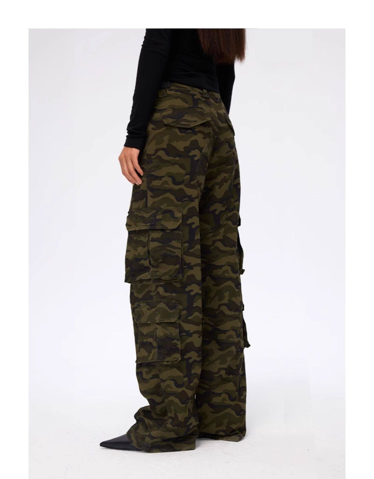 FMG American Style Loose Wide Leg Women's Clothing Camouflage Pants