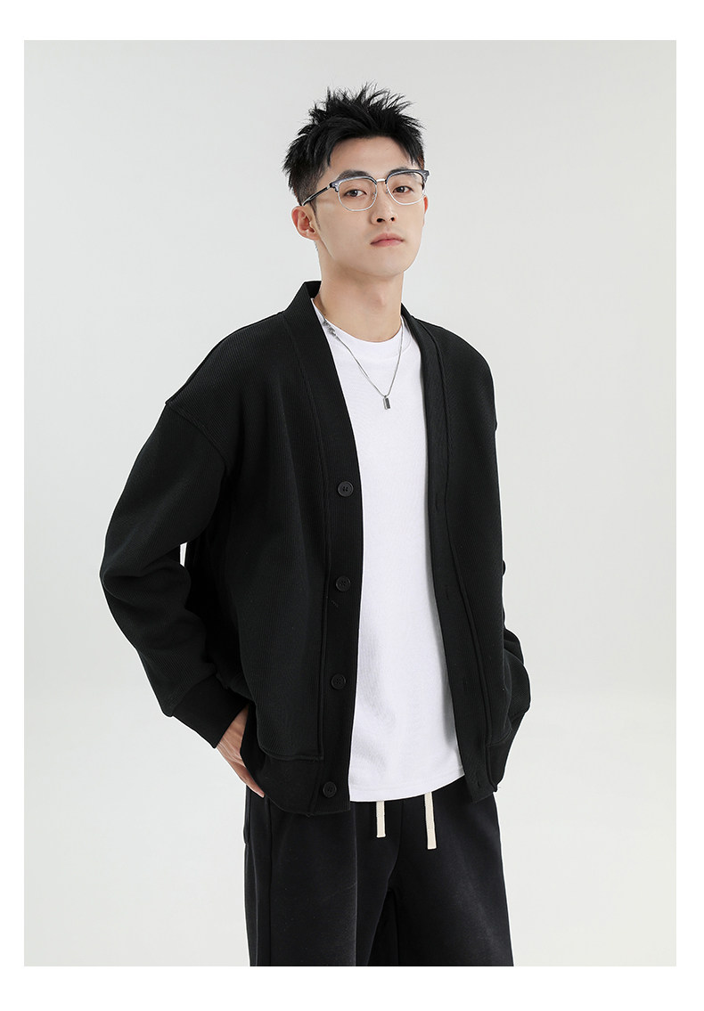 Clothing wearing style: Cardigan