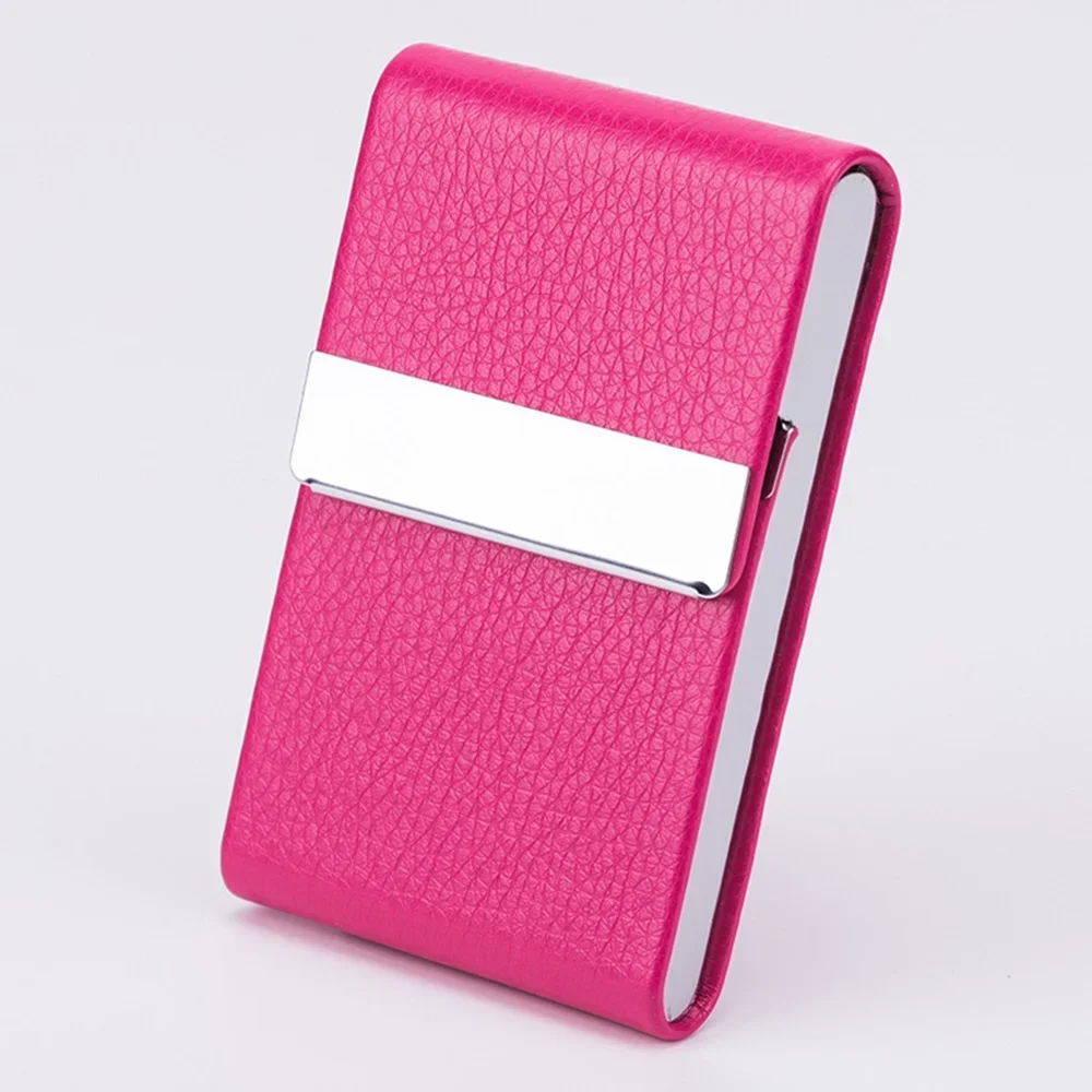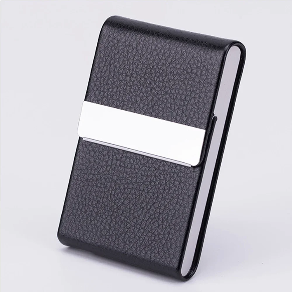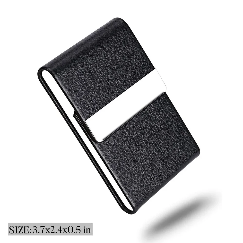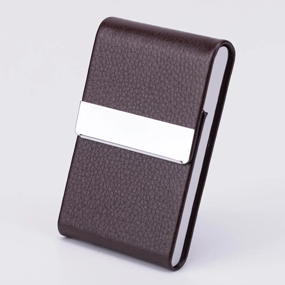 Business card holder made of luxury PU leather and imported high-quality stainless steel. It has good solid construction and professional appearance - uses longer, more impression