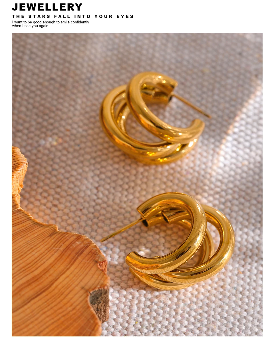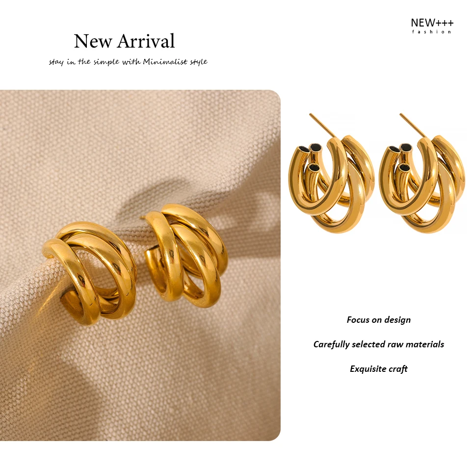 Yhpup New Stainless Steel Accessories Statement Gold Color Metalic Geometric Stud Earrings Pendientes Mujer Wholesale Gift